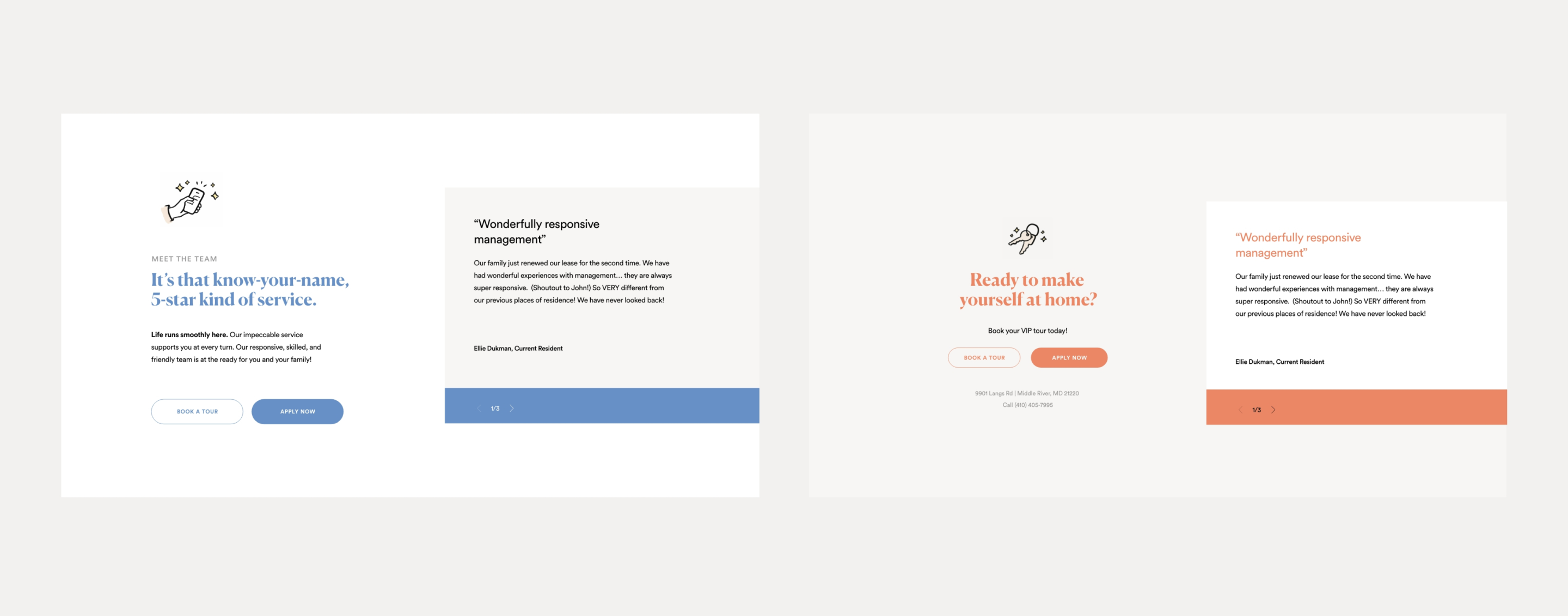 Just because it's designed to be a template doesn't mean it can't feel custom. We chose a visual system that would resonate with our target audience: a middle class American prospect. The little touches, from fun copy to sweet illustrations, help each website feel less like a thoughtless template, and more like the warm, cozy space they'll soon call home.
