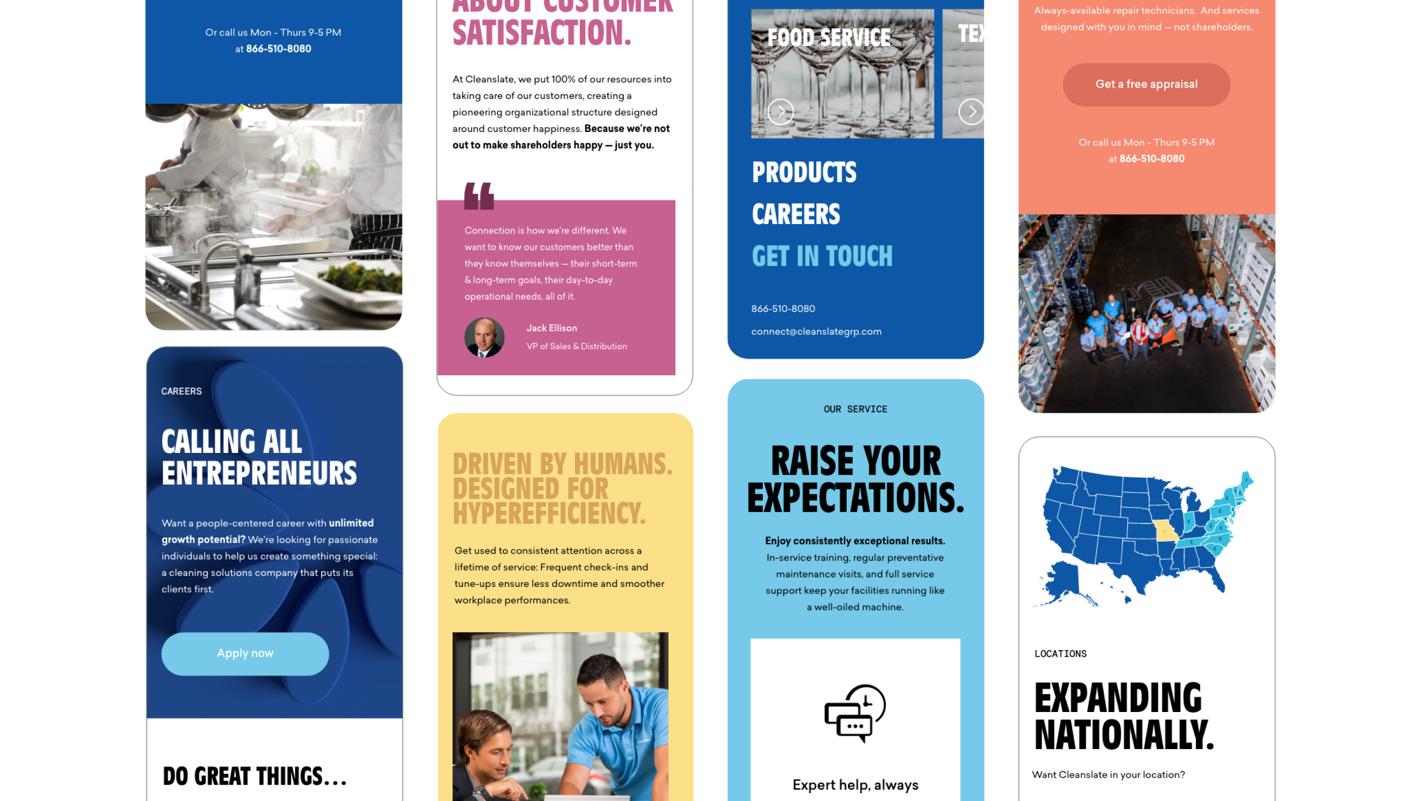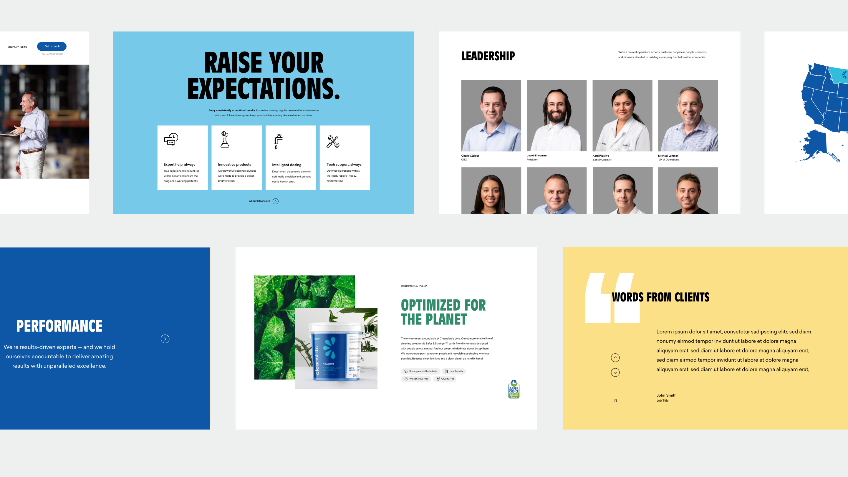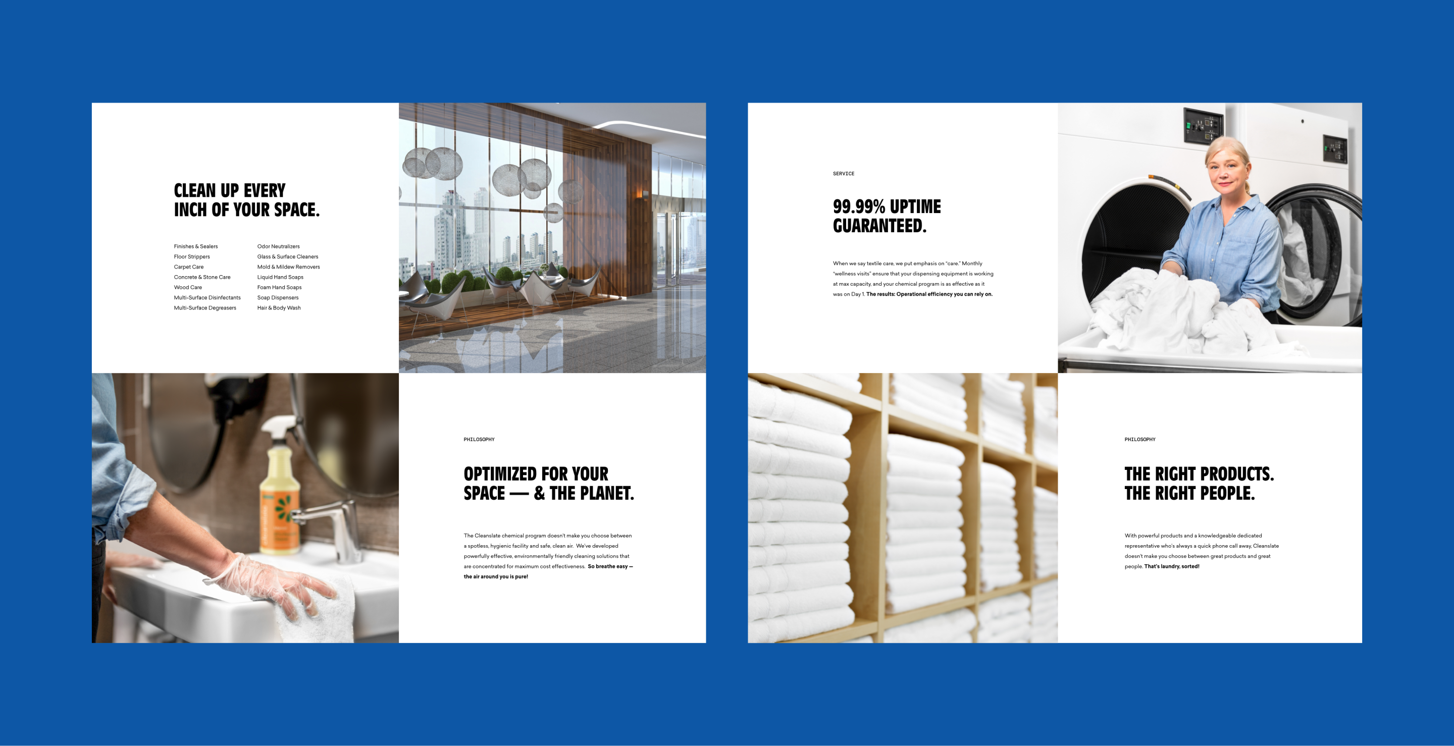 Cleanslate is a national industrial cleaning solution company breaking the mold in a corporate world – a fusion of high-performing cleaning programs and personalized, high-touch support. We built Cleanslate's brand from the ground up, creating a vibrant, colorful visual identity that, like the company itself, stands out from highly corporate competitors. From bold packaging to an innovative website, the brand touches every corner of the customer experience.