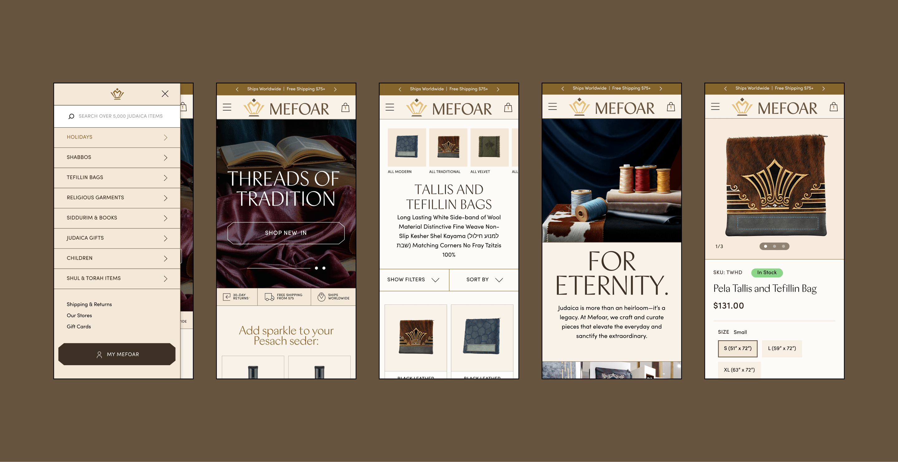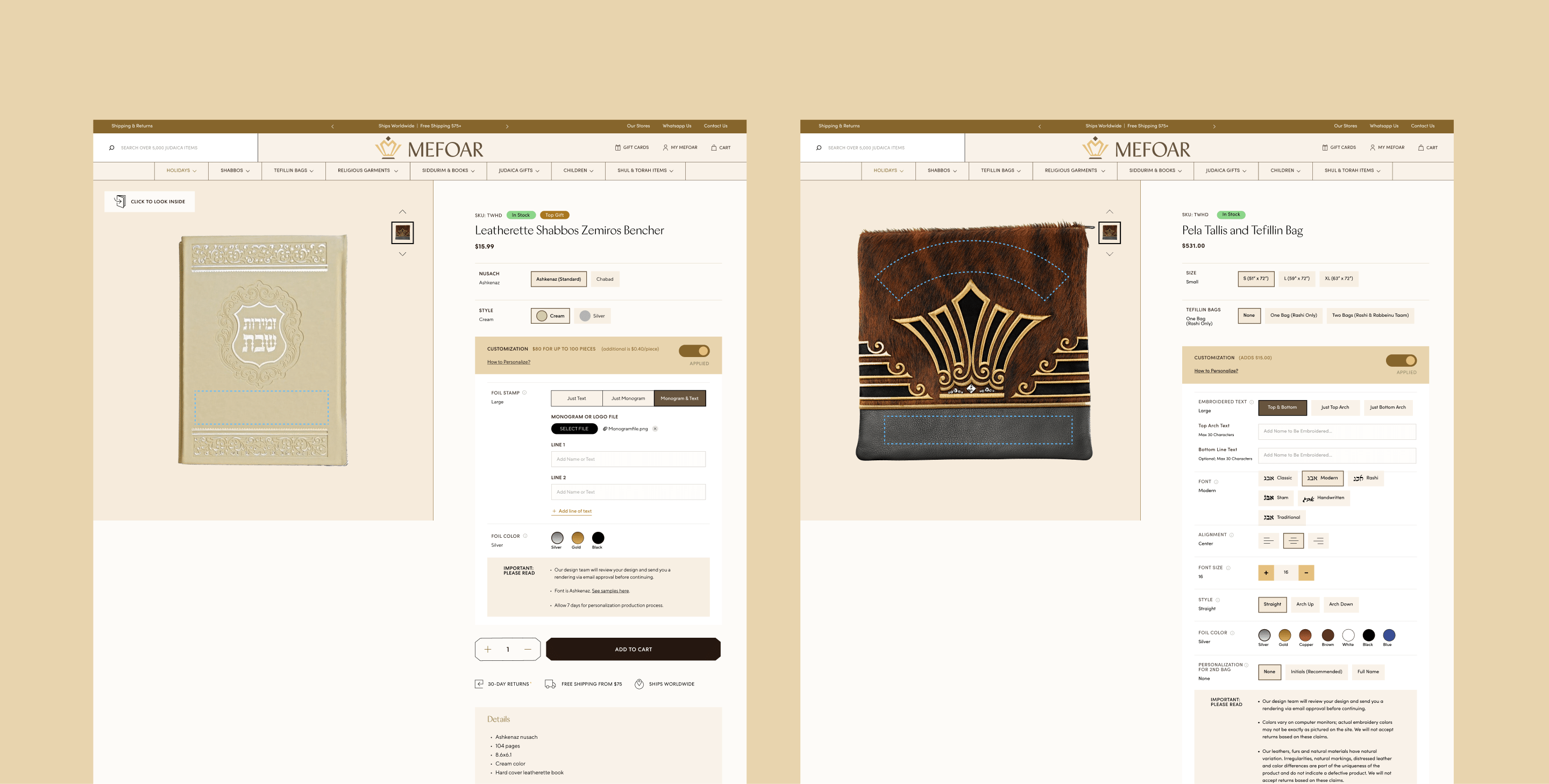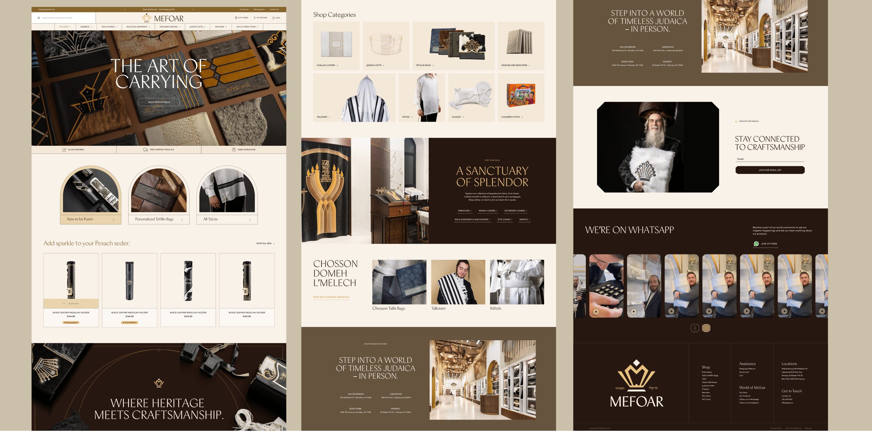 Mefoar is a long-standing Judaica brand known throughout the frum community for its exceptional craftsmanship. With multiple retail locations and a deeply loyal following, Mefoar had strong brand equity, but needed a website that reflected the quality, depth, and scale of what they offer. After Pivot delivered a beautiful rebrand that modernized the look while preserving Mefoar’s traditional spirit, Motif stepped in to bring the brand fully to life online.