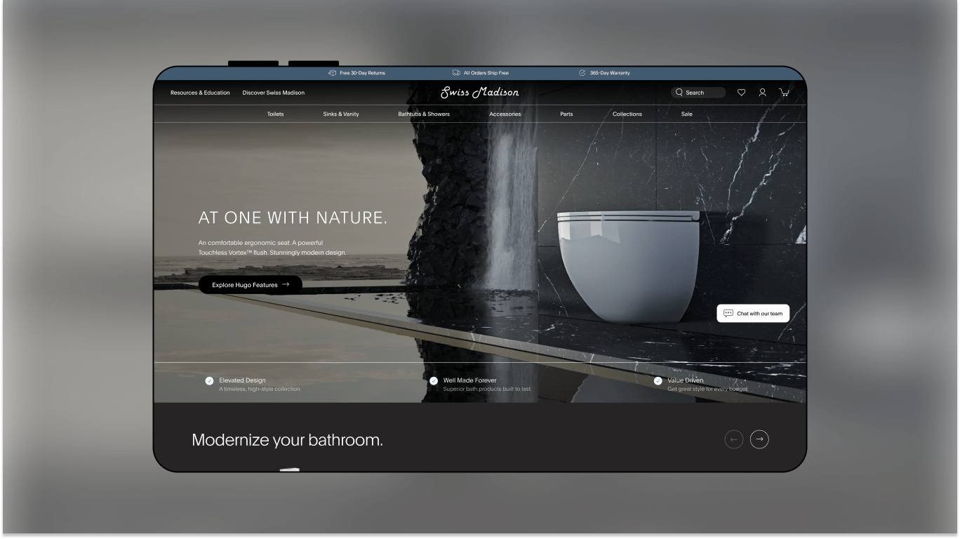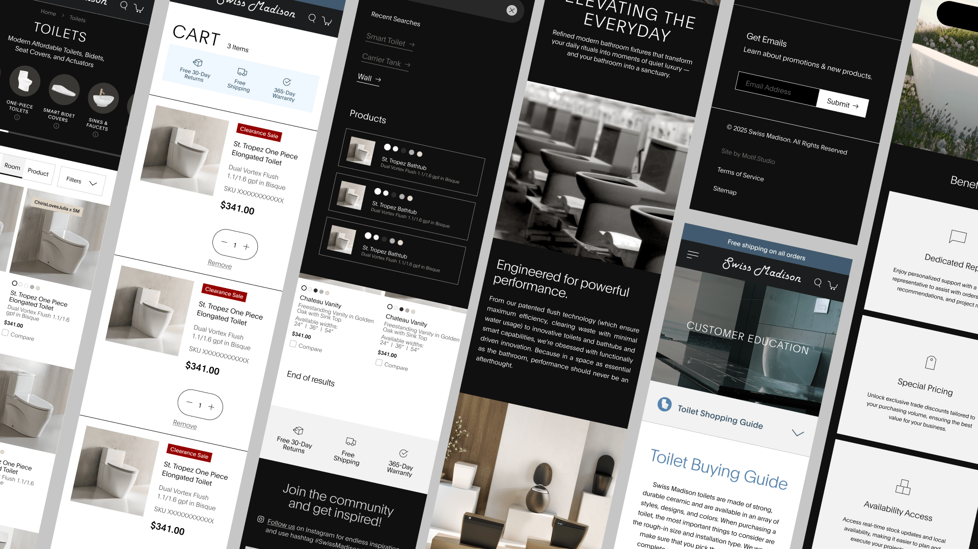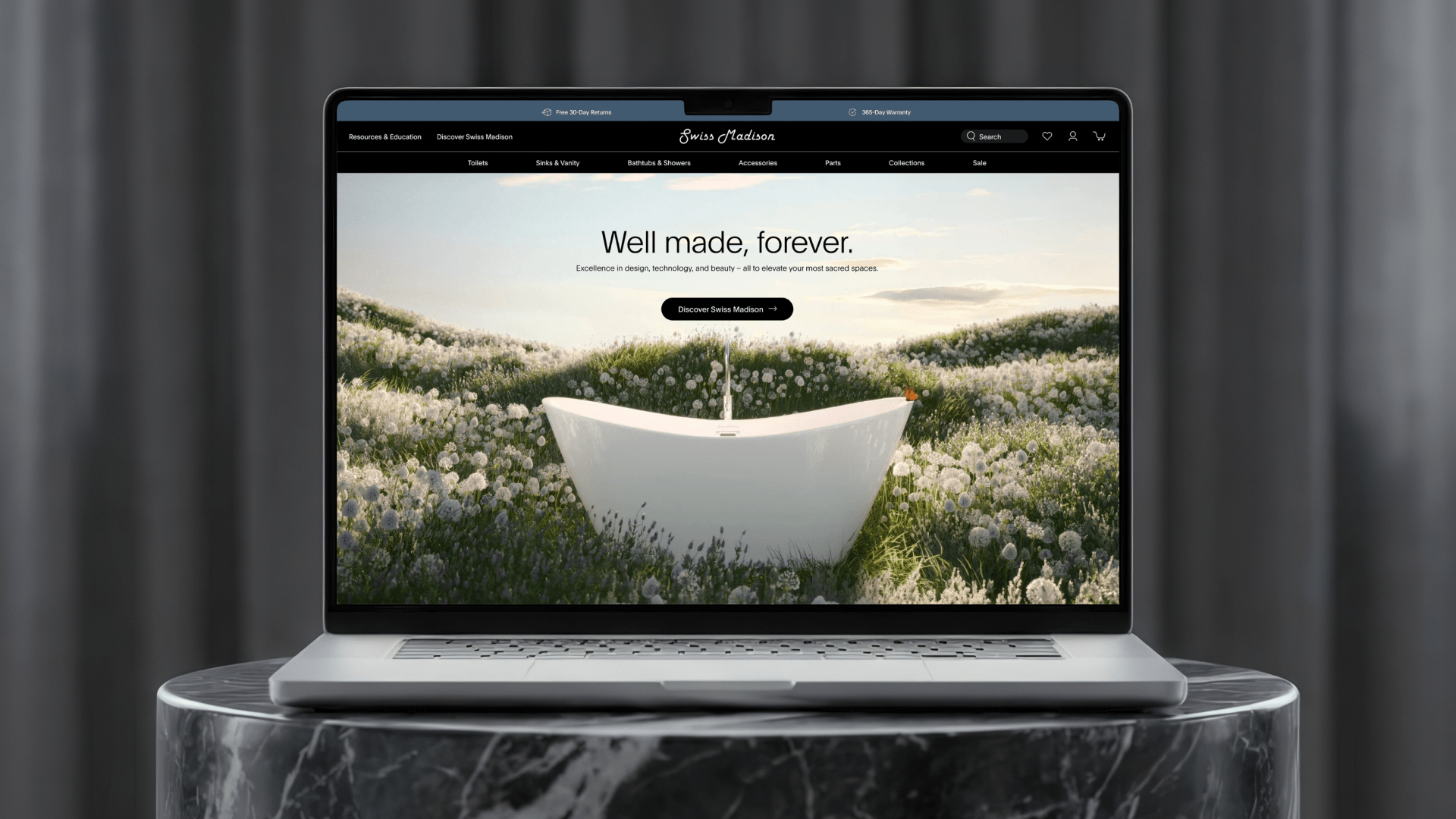Swiss Madison designs beautifully modern bathroom fixtures at a far more attainable price point than legacy luxury brands like Kohler. The problem wasn’t the product. It was the presentation. Their original website was flat, dated, and undersold the quality and design of what they actually make. Motif completely reinvented the brand’s digital presence without changing the logo, transforming Swiss Madison into a confident, design-forward price brand — premium in look and experience, accessible in cost.