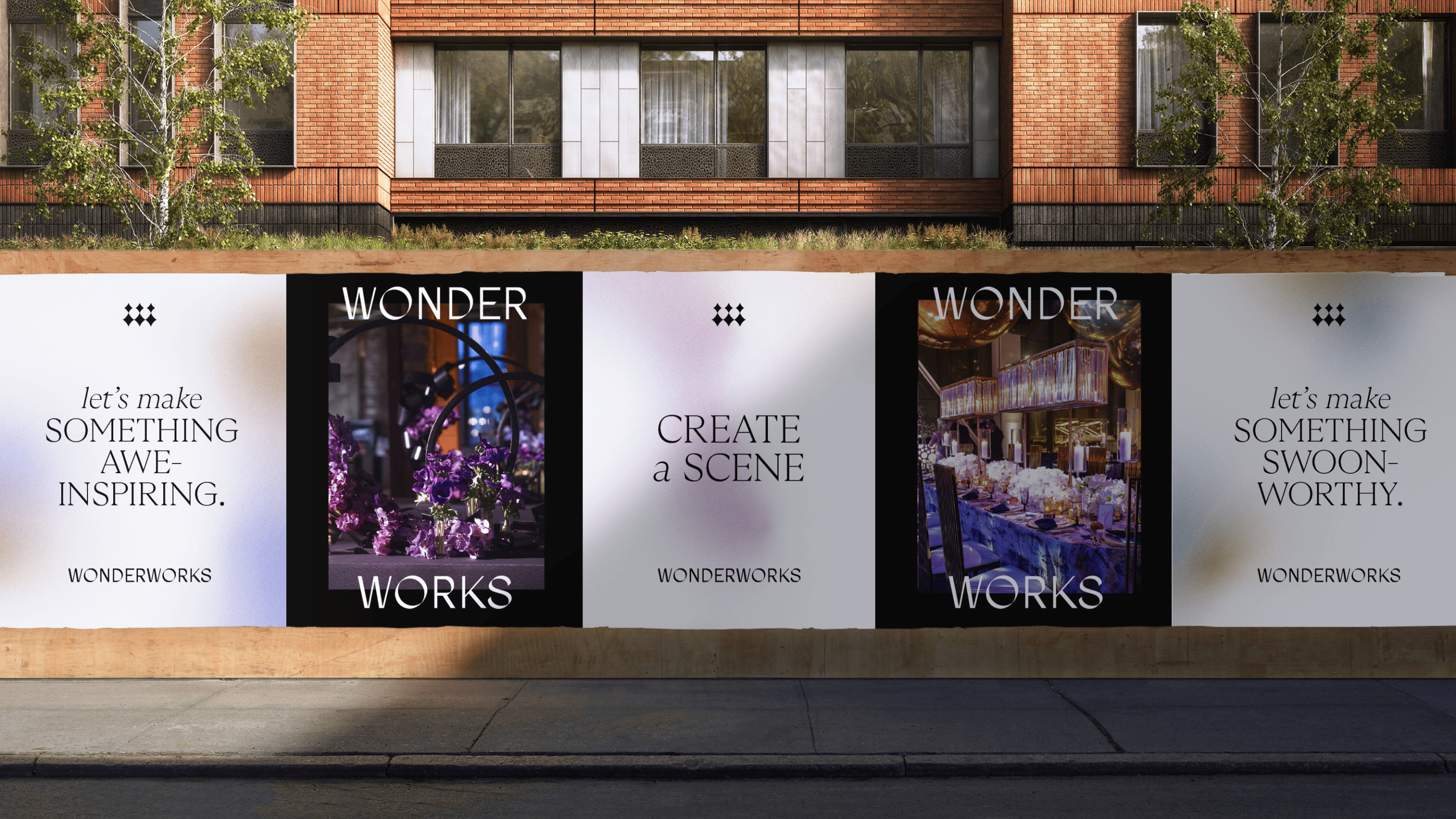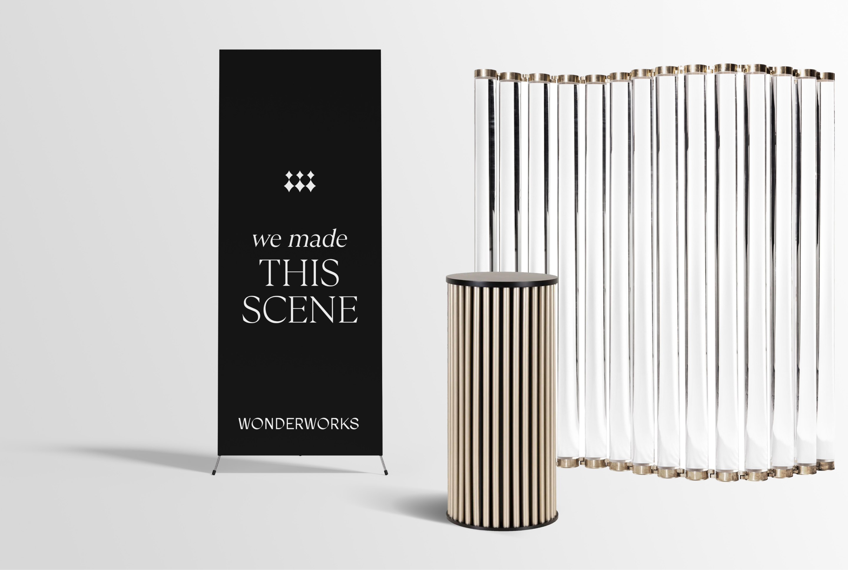 Wonderworks creates custom signage and event decor for luxury brands and business. Everything at Wonderworks is ideated and crafted in-house, so the sky’s the limit, offering clients sensational new pieces that you won’t find anywhere else. The brand identity weaves in their unique ability to craft anything, always making the scene.
