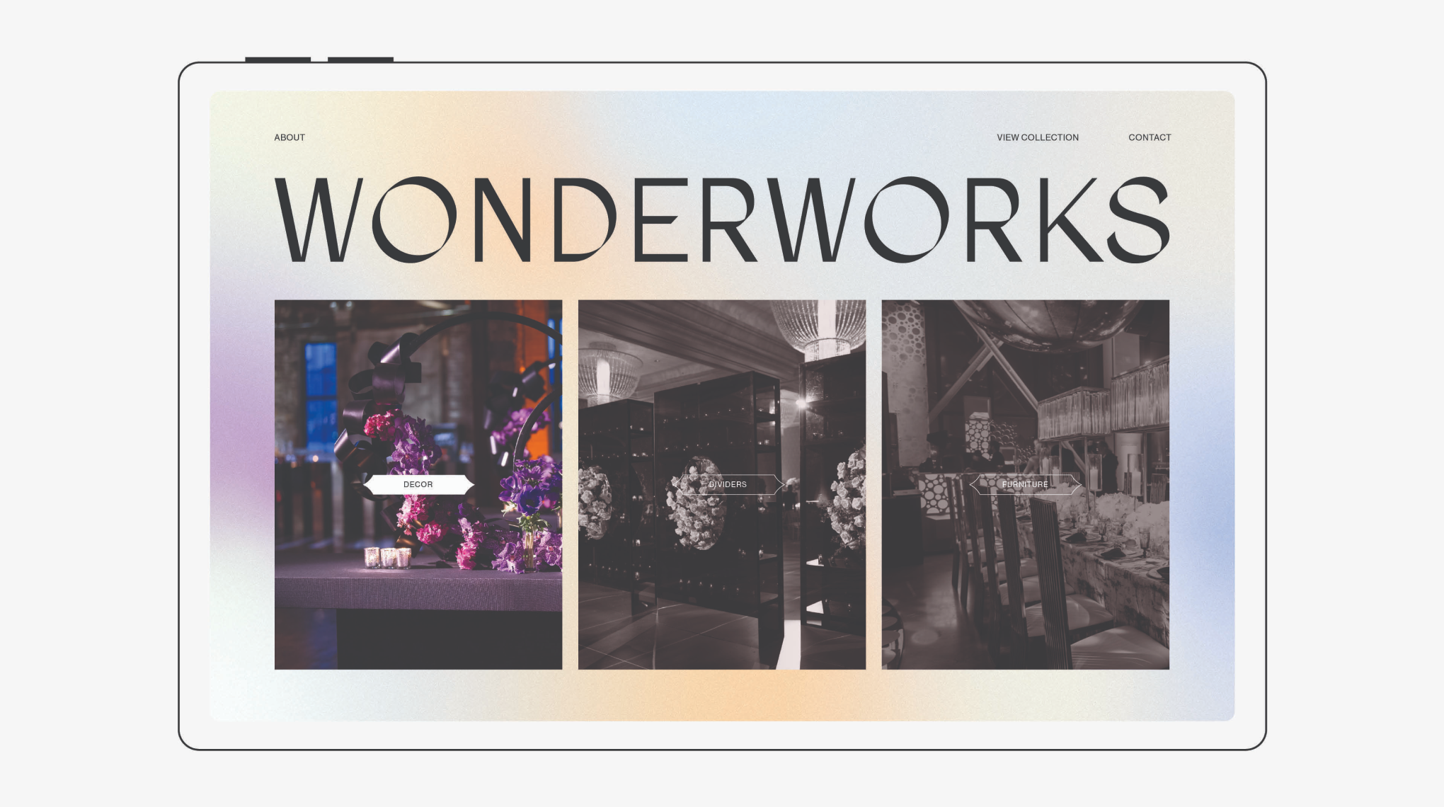 The brand messaging centers around the tagline: Let’s create a scene. The tongue-in-cheek copy sets Wonderworks apart as a decor and signage company that gets inventive, crafting innovative and gorgeous creations for their discerning clientele.